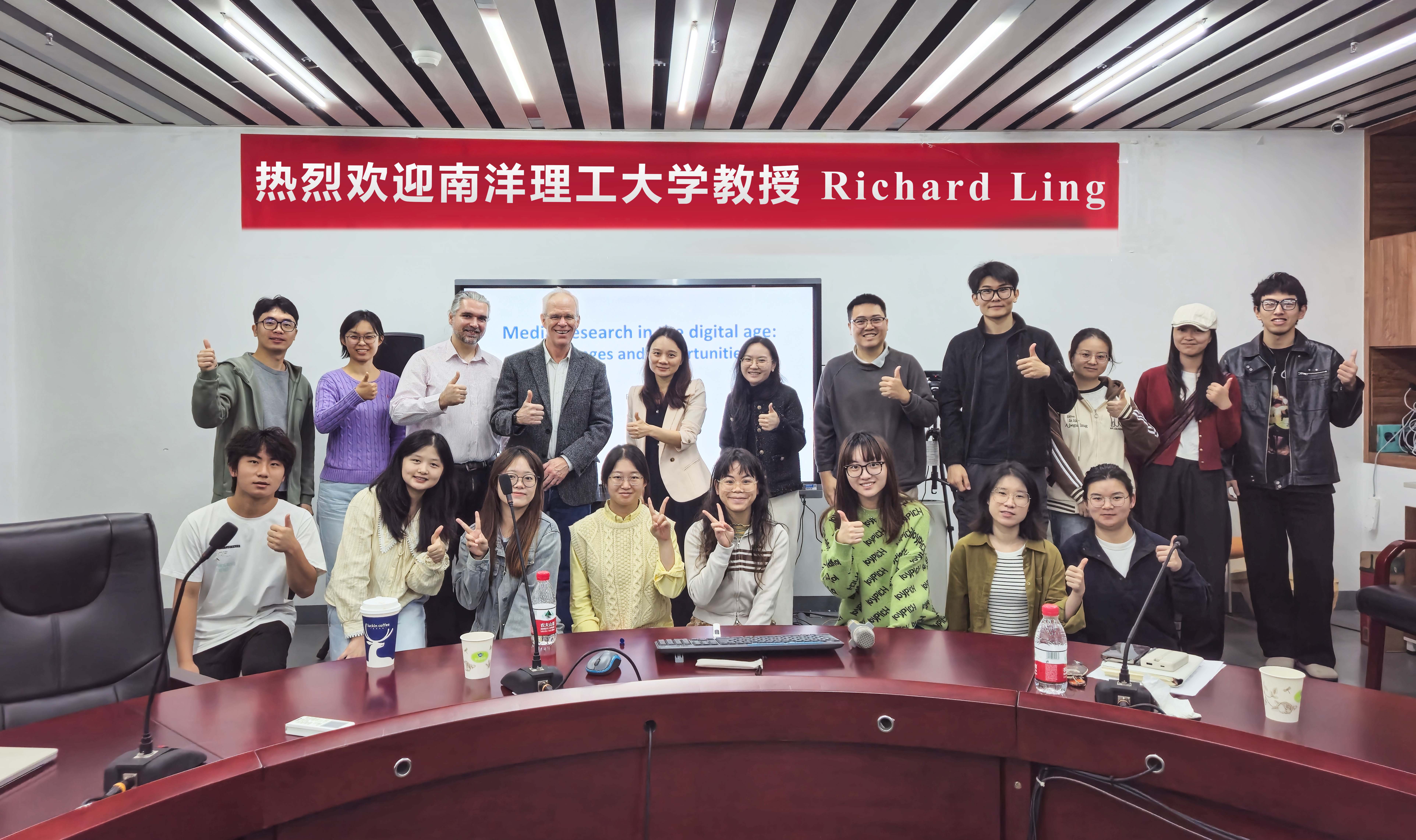 On November 25, 2024, Professor Richard Ling, former Professor of Media Technology from the School of Communication and Information at Nanyang Technological University, Singapore, delivered an academic lecture on "Media Research in the Digital Age: Challenges and Opportunities" at the School of Media and Communication, with Professor Guang Yang hosting the event.