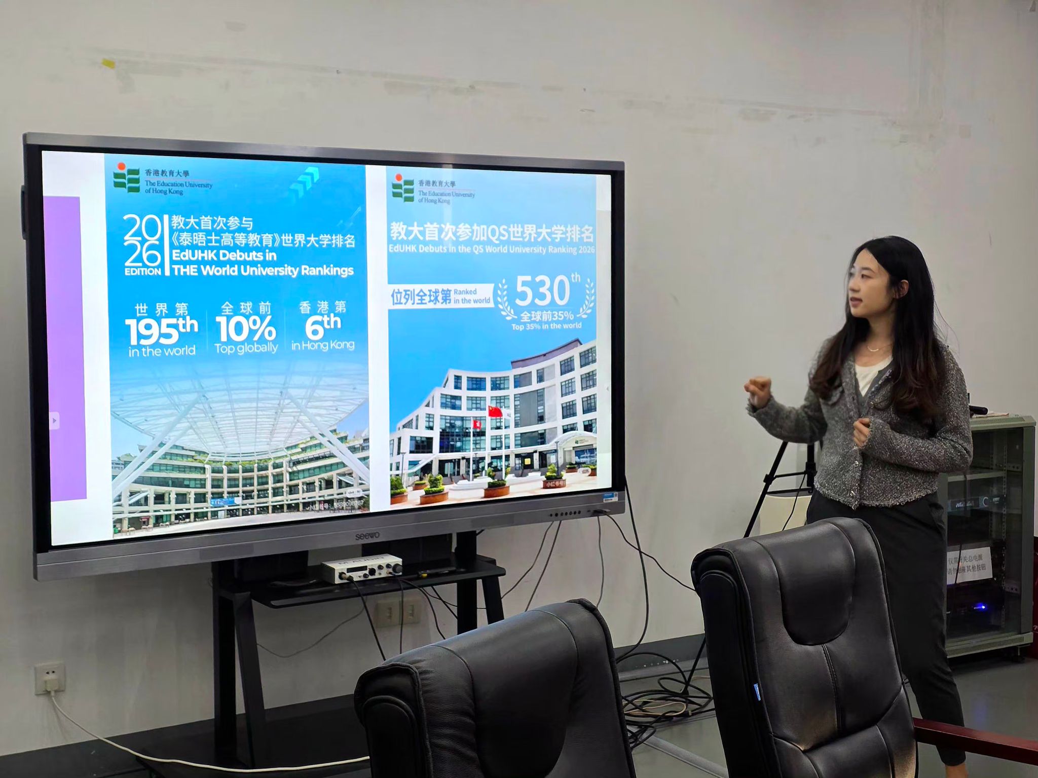 During the information session, Dr. Wu first provided a comprehensive overview of EdUHK and the academic, living, and cultural environment in Hong Kong. She introduced the University’s history, international rankings and academic resources (ranked 195th globally in the Times Higher Education World University Rankings and 530th in the QS World University Rankings), as well as its geographic advantages, transportation system, and living facilities. She then outlined the distinctive curriculum design of the three Master’s programs, highlighting their strong faculty teams, research support systems, as well as graduates’ career development prospects and alumni networks. The curricula of these programs integrate interdisciplinary knowledge such as artificial intelligence and educational technology, and are designed to cultivate students’ critical thinking and creativity in digital communication and new media related fields. The programs are delivered primarily in Chinese, supplemented by English and Cantonese instruction, enabling students to enhance their professional competence in a multilingual learning environment.