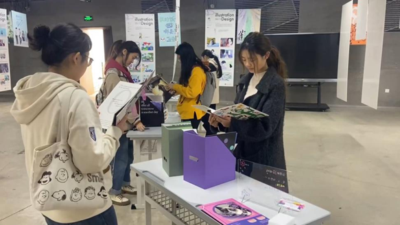 《插画设计》展示以连环绘本为主,故事主体有书籍、影视、音乐剧等不同类型;《印刷与图文编辑》选择大主题具体阐释,以图文方式进行表达,并制作实体册子。展出现场设置绘图展板场置、实体图文册与周边文创,展示设计与插画的特色。