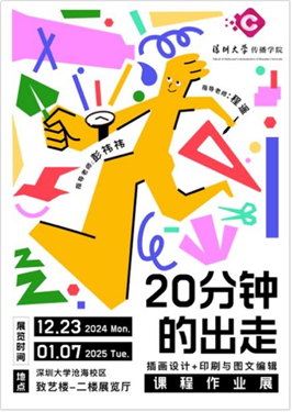 2024年12月23日起,由传播学院广告系开展的“20分钟的出走”课程作业展在沧海校区致艺楼二楼展厅展出。