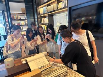 在五楼的VIP区,黄显清老师带同学们近距离观察了古代装帧艺术的巅峰之作“龙鳞装”书籍,并详细讲解了其他从世界各地收集的艺术图书。23级新闻专业的叶涵慧同学表示,此行收获了许多印刷行业的前沿知识,不仅拓展了专业视野,也对传统出版艺术有了更深的理解。