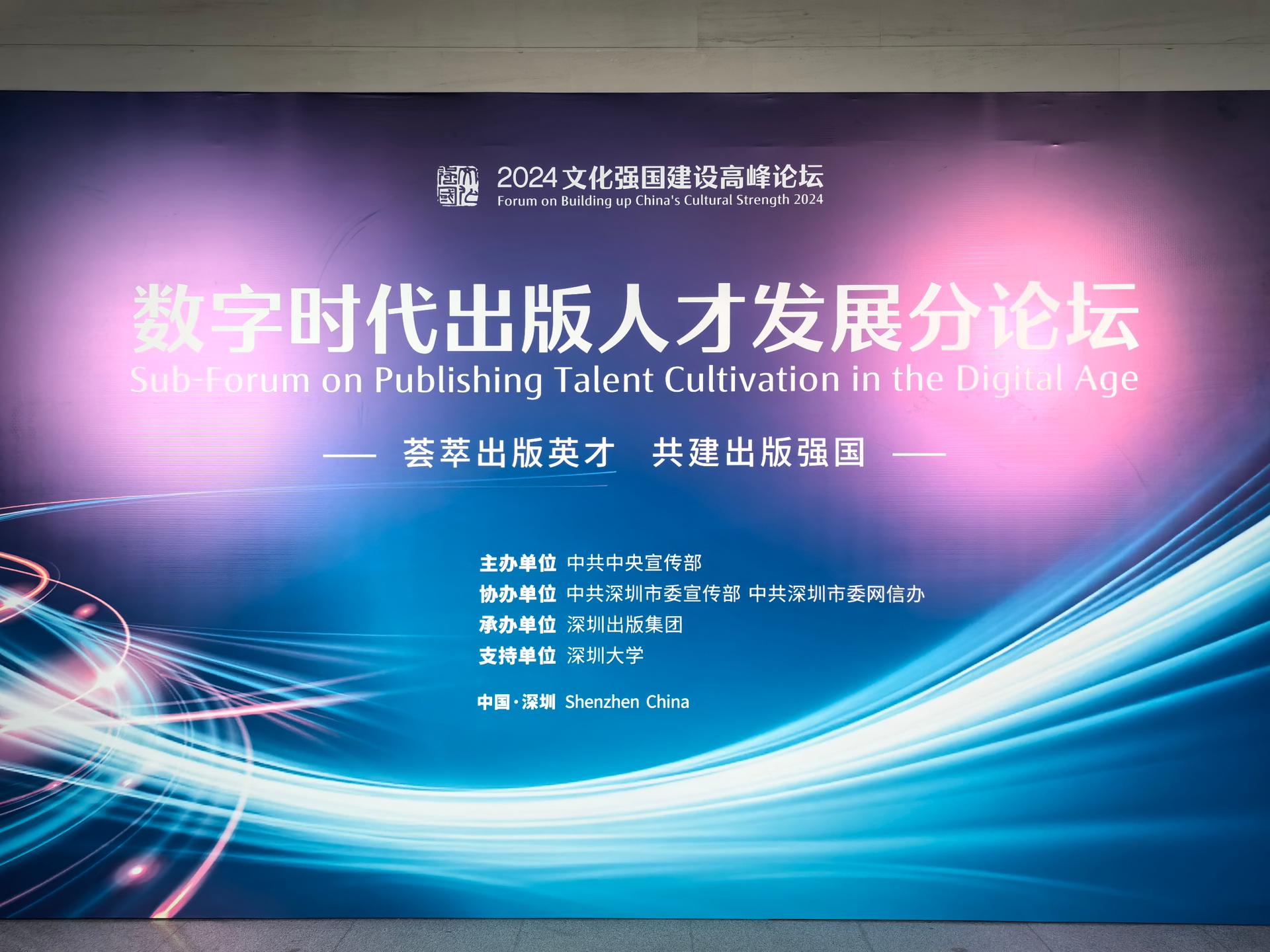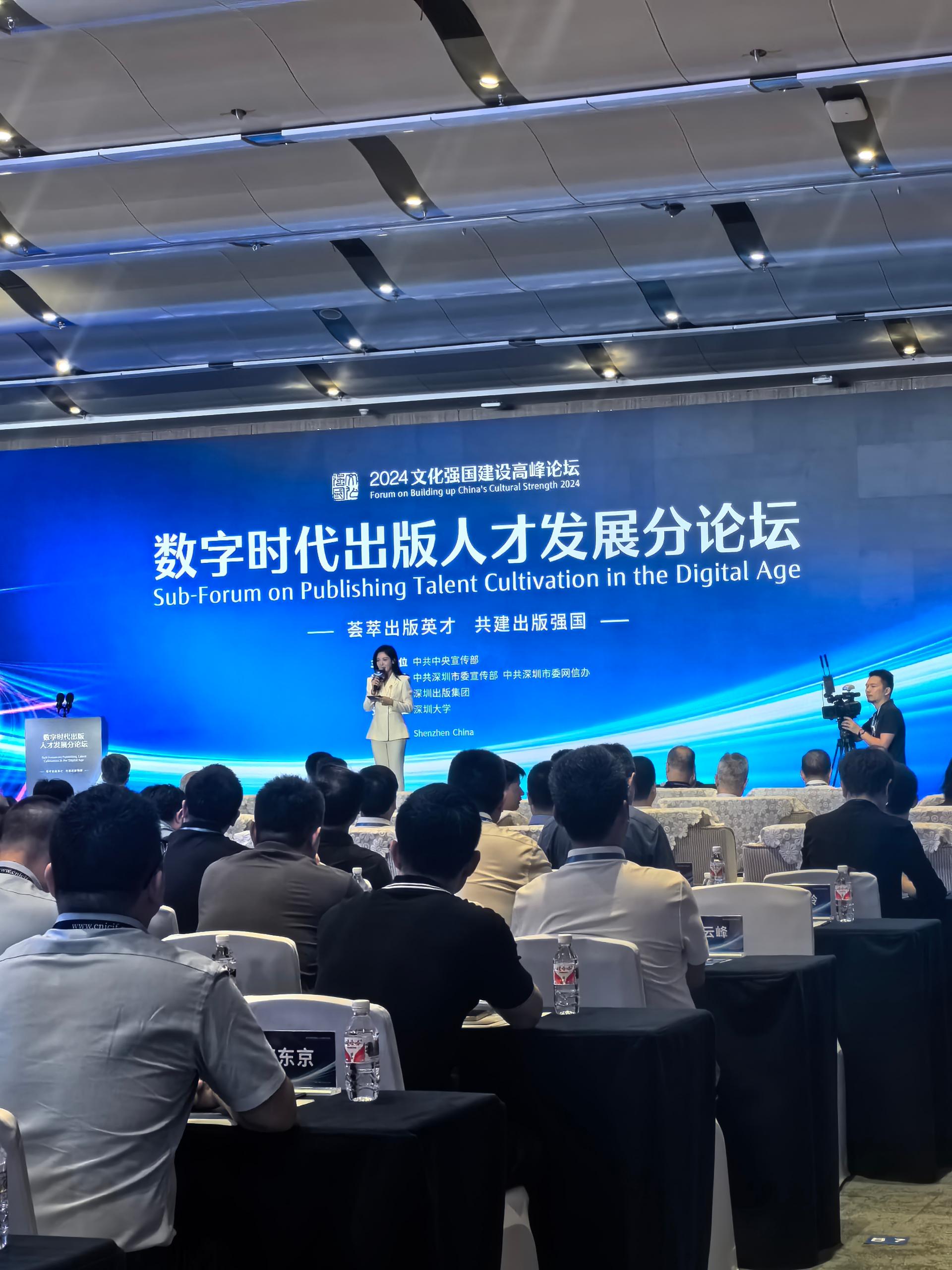 5月24日,深圳出版集团重点承办的2024文化强国建设高峰论坛的“数字时代出版人才发展”分论坛中式拉开帷幕,该论坛分为上午、下午两场,安排了嘉宾演讲、专家对谈等环节,邀请来自相关管理部门、高等院校、智库机构、行业协会、出版企业、数字技术企业等方面的知名专家齐聚一堂,深入探讨数字时代高素质出版人才队伍建设的机遇挑战、有效模式和未来路径。