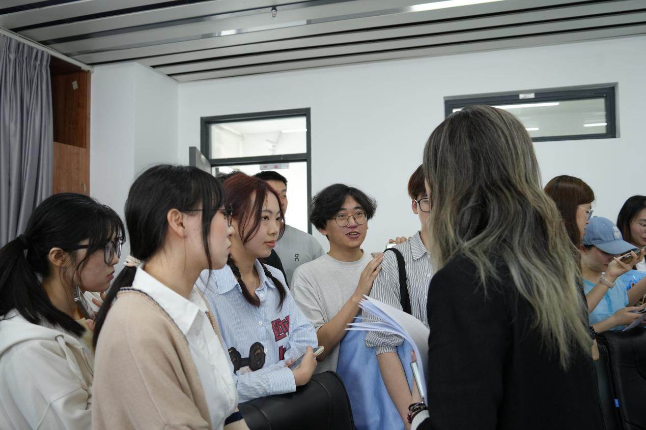 上午10:20,活动进入师生互动环节。各二级方向师生分别前往致艺楼展开深度交流。在健康传播、国际传播、融合新闻、数字营销分会场中,业界导师结合自身从业经历,分享了行业趋势与职业发展建议;学生则通过自我介绍,展示了学术兴趣与实践目标。