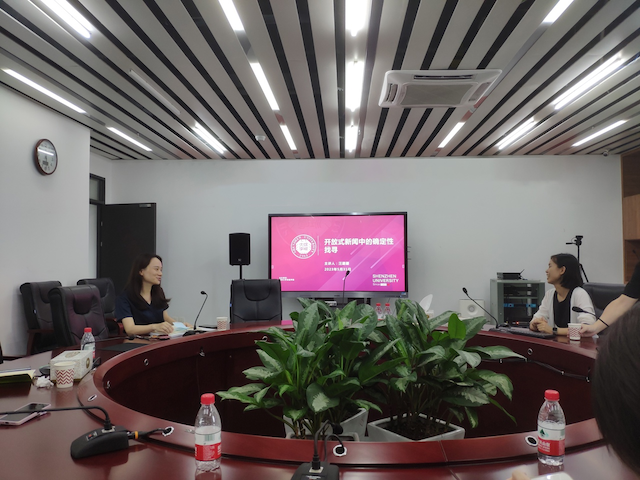 5月31日下午,深圳大学传播学院副教授汪翩翩为学院师生主讲了一场以“开放式新闻中的确定性找寻:探究社会媒体中信源网络的影响因素与结构性特征”为题的学术讲座。本次讲座由传播学院副院长杨洸教授主持。