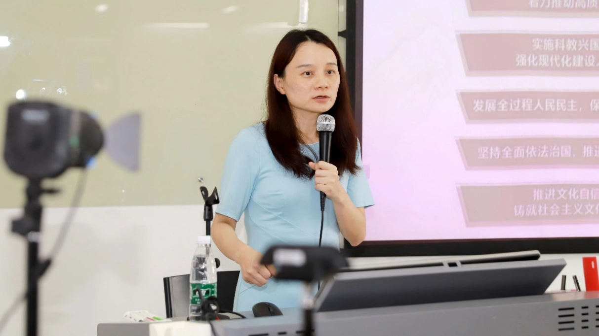 杨洸老师以党的二十大报告,学习贯彻习近平总书记在广东考察时发表的重要讲话,以及赓续弘扬特区精神,勇当改革开放尖兵三个部分为指引开展授课,以党的光辉奋斗史和同学们的学习实践相结合,鼓舞支部同学发扬奋斗精神,勇当改革开放尖兵。