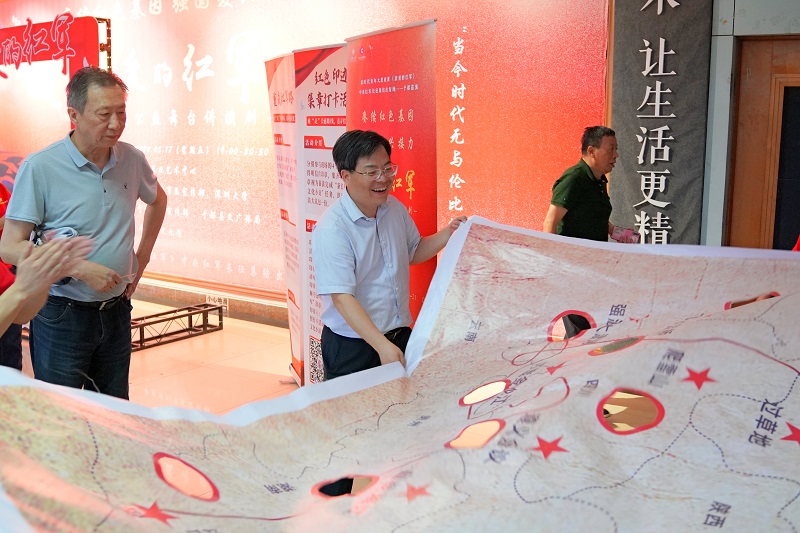除了舞台剧表演,深圳大学传播学院马克思主义新闻观创意传播与实践党支部在演出期间还特别设置了“赓续红色基因·强国复兴接力”《亲爱的红军》新长征红色文化小站互动环节,通过“寻找长征足迹”、“重走红军路”、“红色集章打卡活动”等兼具知识性和趣味性的形式为红色文化注入活力,让大家在欣赏舞台演出之余提升观众的参与感、体验感和获得感,用极富创新的互动内容在革命老区掀起了一波红色文化创意传播热潮。