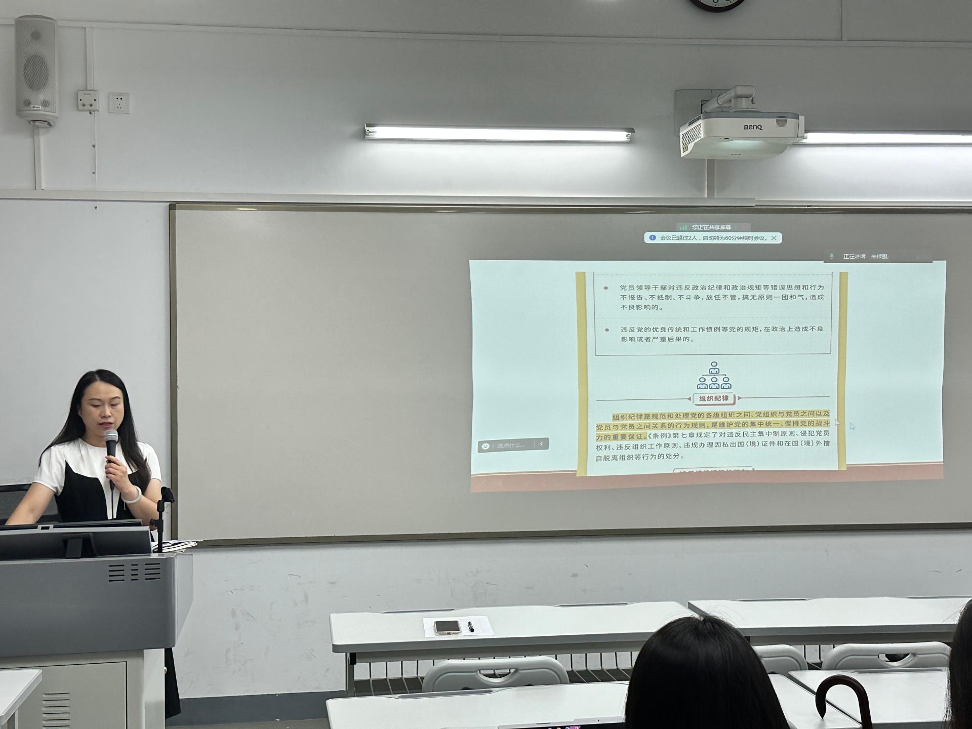 为深入贯彻《中共中央办公厅关于在全党开展党纪学习教育的通知》,进一步落实党中央方针政策,严格遵循党纪学习教育要求。6月4日,传播学院新闻系学生党支部召开党纪学习教育。此次学习由支部书记余宗蔚同志领学,党支部委员会委员、支部党员出席会议。