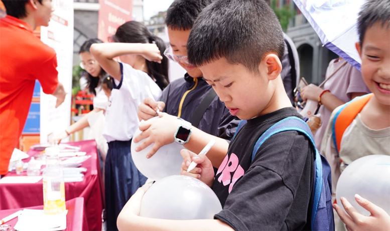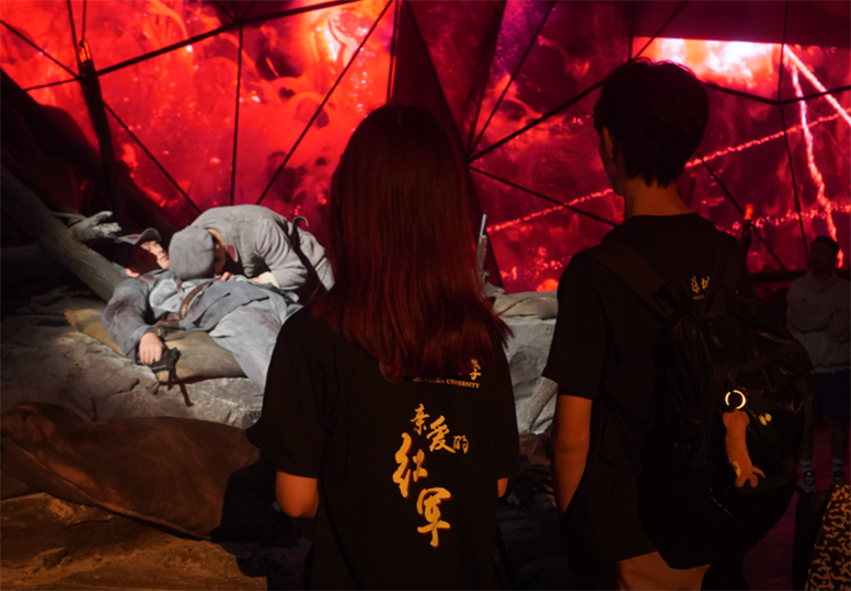 互动环节共分为“重走红军路”、“气球红色寄语”、“红军相框拍照打卡”三个部分,每个部分安排相应的长征知识趣味游戏及《亲爱的红军》文创周边礼品,寓“学”于乐,将长征精神以青春的气息、创意的方式传得更深、更远。