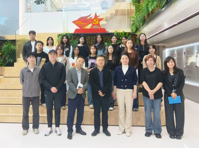 参观结束后,传播学院师生与新安街道、相关企业等负责人展开座谈。新安街道党建和组织人事办公室主任莫庸对到场师生表示欢迎,阐述新安街道的基本情况与党建工作。莫庸表示,新安街道党工委十分重视与高校的合作,双方围绕课题实践、创新创业等实质性举措,培养具备高端化、数字化、国际化视野的前沿型人才。传播学院党委书记周小茜介绍学院整体情况,学院现有网络与新媒体、广告学、新闻学三个本科专业,聚焦于国际传播、数字新闻与媒体文化等前沿研究领域,具有多项精品课程和标志性科研成果,并培育《亲爱的红军》、《跨境山海》等特色党建品牌。后期,学院将结合新安街道的相关资源,与街道合作开展党建育人项目,开展红色主题教育学习实践活动,并组织《亲爱的红军》舞台剧展演、新长征红色文化小站品牌走进街道的社区园区,并将相关企业实际工作案例引入课堂教学,让学生在模拟的工作场景中学习和实践,加强学生的专业实践锻炼,提升学生的核心竞争力,形成政校、企校党建互促。