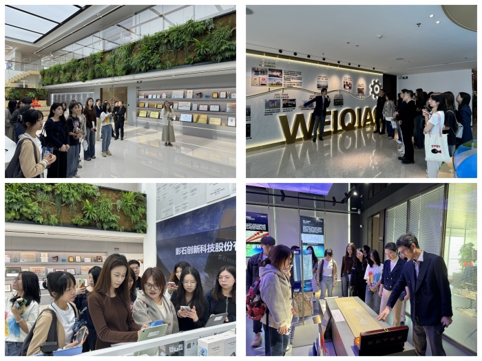 一、参观新安名企,加强校企交流 2024年10月,传播学院与新安街道办事处正式签署了合作备忘录。双方融合资源,在党建共建、人才培养、创新创业等多个领域展开深度合作。本次交流旨在进一步推动双方资源共享、就业工作场置,实现教学产研共融。 活动前期,传播学院师生前往新安街道的知名企业—影石创新科技股份有限公司与魏桥创业集团宏桥投资控股(深圳)有限公司进行参观,了解两家公司的发展历程、成功案例及未来战略规划。师生现场体验360度全景相机等专业级运动摄像机,在企业负责人的介绍下了解介绍宏桥产品特性等,就产品制作、技术研发路径以及未来市场趋势等问题与现场工作人员展开交流与探讨。