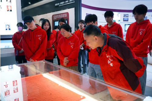 最后,周小茜勉励全体成员紧紧围绕习近平文化思想,讲好中国故事,赓续红色基因,以《亲爱的红军》为起点,在粤港澳大湾区和社会主义先行示范区通过科学实践切实推动“两个结合”,聚力立新、阔步前行,在新时代的长征路上书写属于Z世代的红色传奇。 学史增信促担当 凝心聚力启新程 为构建常态化学习机制,通过强化理论武装夯实思想根基,提升师生队伍的责任担当意识和实践创造能力,2025年2月21日,深圳大学传播学院马克思主义新闻观创意传播与实践党支部与大型原创剧目《亲爱的红军》创作团队走进深圳大学校史馆,以校史研学的特殊形式开启新学年思政教育新征程。在参访深圳大学校史馆过程中,师生重温学校与国家同呼吸、与特区共奋发的历史足迹,感悟深大“自立、自律、自强”的精神内核,并围绕创建“双一流”高校,服务教育强国建设、助力“双区”发展战略的重要使命展开讨论。