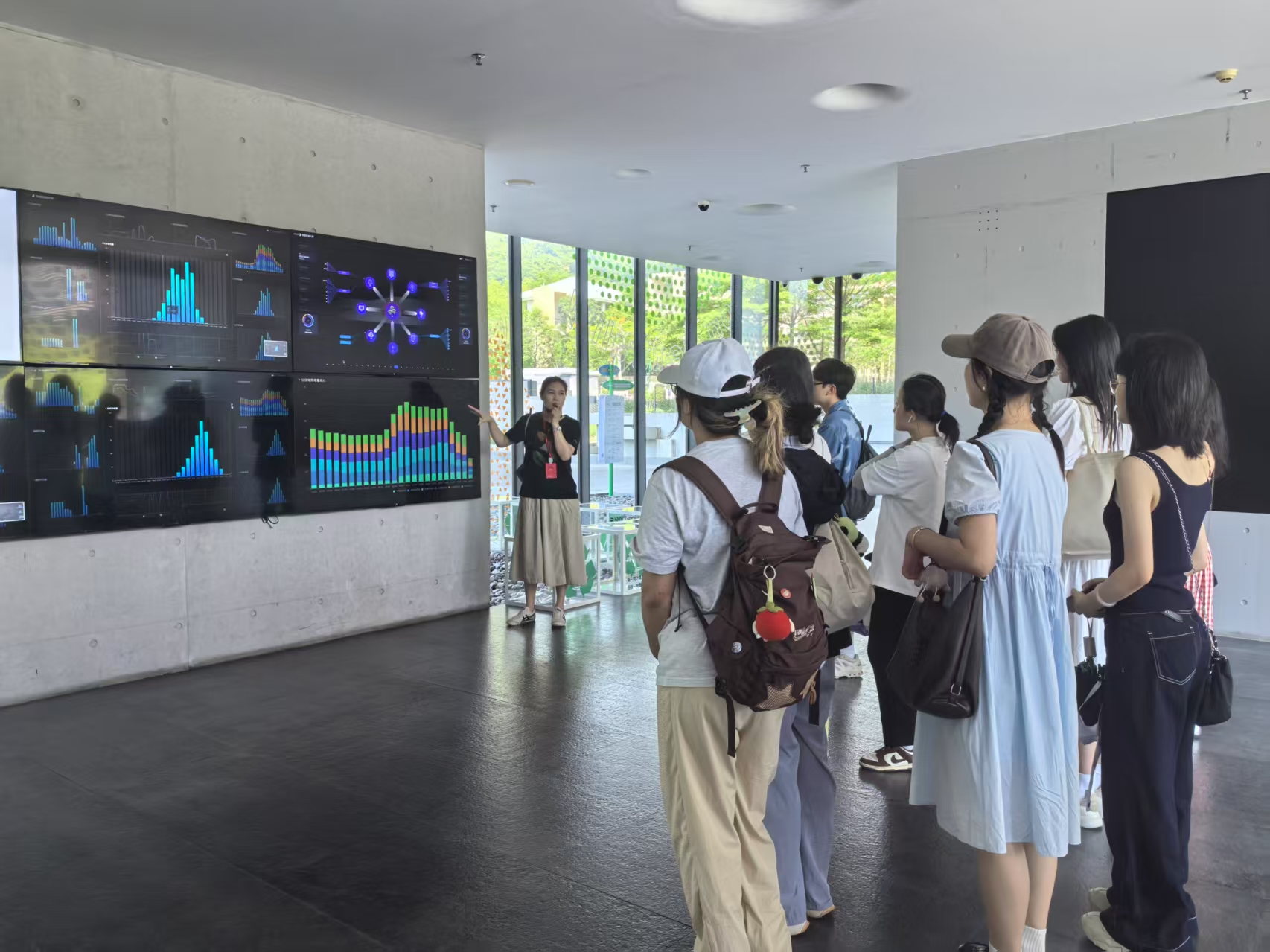 党员师生走进盐田区碳中和先行示范区党员教育示范基地(也称生物圈三号)。在讲解员的带领下,深入了解盐田区在碳中和领域的创新实践与成果,包括先进的能源管理系统、低碳建筑、可再生能源利用等项目。生物圈三号园区在绿色低碳发展道路上的创新实践令人赞叹,成员们通过详实的案例展示与专业讲解,系统学习了盐田如何将绿色发展理念融入城区规划、产业升级与日常生活,深刻认识到实现“双碳”目标是推动高质量发展的内在要求。
