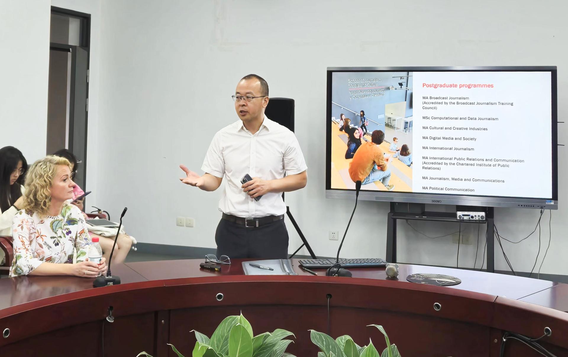10月17日上午,英国卡迪夫大学新闻媒体与文化学院院长Matt Walsh教授、招生负责人Sarah Sherrington、中国合作伙伴负责人刘兴飞一行到访传播学院,开展招生宣讲、学术讲座和合作交流活动。此次访问不仅为我院师生带来了前沿学术动态,也进一步推动了两院间已签署的硕士“1+1+1”联合培养项目的执行。