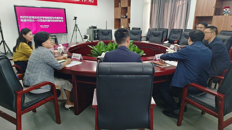 陈建华院长介绍了湖北经济学院新闻与传播学院的发展历史、学科实力、特色平台等,提出目前学院自身发展所面临的问题,例如如何进行数字化转型、学科融合交叉、师资人才引进、毕业设计等,希望与我院在这些方面的经验做法进行交流。陈显玲主任和吴怿副主任详细回答了对方的疑问,分享了我院在科研和教学方面的数字化建设、开设工作坊等经验。杨帅书记与我院陈一鸣副书记详细交流了我院在开展团建活动、学生思政实践《亲爱的红军》、校友传帮带等方面的经验,并与来访老师就学生就业、考研保研等情况等进行深入探讨。