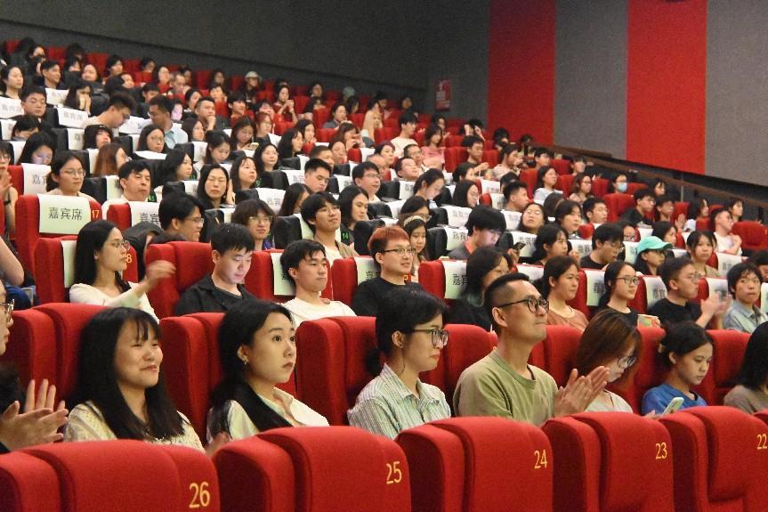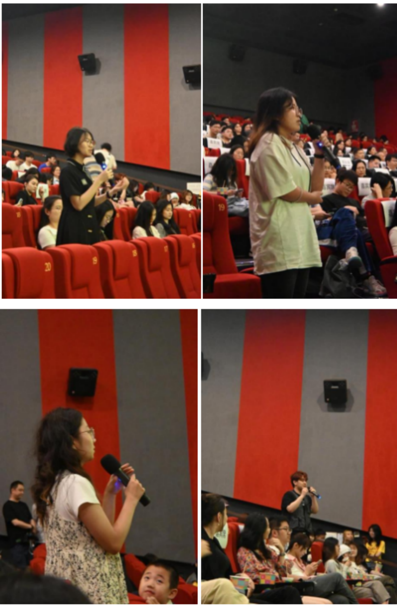 影片放映结束后,导演兼编剧郭海涛怀着无比激动的心情再次回到台前,与同学们分享创作历程、传达创作理念;影片的出品人黄凡畅先生也上台为大家分享了在这部电影制作之初自己选择投资它的初衷,郭海涛对黄凡畅慷慨的支持以及无条件的信任表达了最由衷的感谢;同学们亦就影片的剧情踊跃发表自己的看法、提出自己的疑惑,与郭海涛共同探讨着电影里的诸多伏笔和细节设定。当众多谜底和巧思被揭示后,观众们都大吃一惊,直呼一绝,现场的掌声更是此起彼伏,连绵不断!
