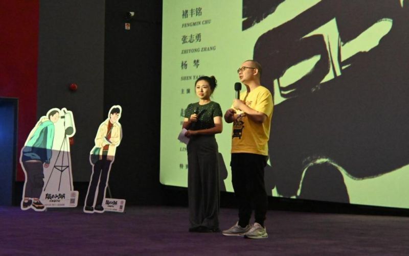最后,所有的主创嘉宾与工作人员们一同聚集到观众席前,一手拉横幅,一手捧大麦,与在场的所有观众一起,喊出了他们最诚挚的祝福:“陨石江湖,票房大卖!”