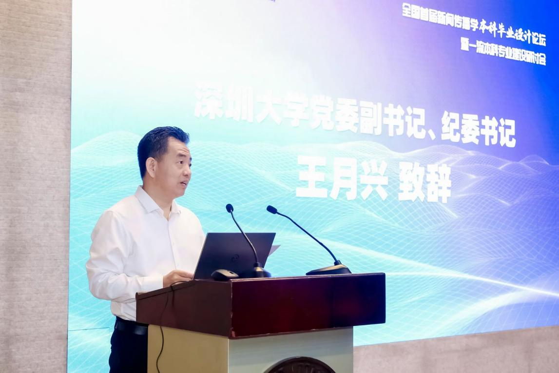 开幕式由深圳大学传播学院副院长彭华新教授主持。深圳大学党委副书记、纪委书记王月兴在致辞中表示,深圳大学作为一所坐落在改革开放前沿的城市大学,秉承“自立、自律、自强”的校训精神,致力于培养具有国际视野、创新精神和社会责任感的高素质人才。他认为,新闻传播教育者有责任、也有义务,不断提升新闻传播教育的质量,培养更多优秀的新闻传播人才,要高度重视毕业设计这一教学环节,通过毕业设计培养学生的实践能力、创新能力和团队协作能力。