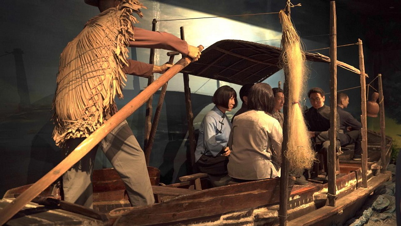 在纪念馆内,通过仿真模型人偶呈现了当年在香港铜锣湾避风塘驳船码头小船中茅盾夫妇等人准备“横渡”九龙红磡的场景,波浪翻滚、夜色昏沉,精细的设计仿佛带着大家重回那场惊心动魄的历史大营救。除此之外还有西部陆路营、草寮招待所微缩景观等场景。