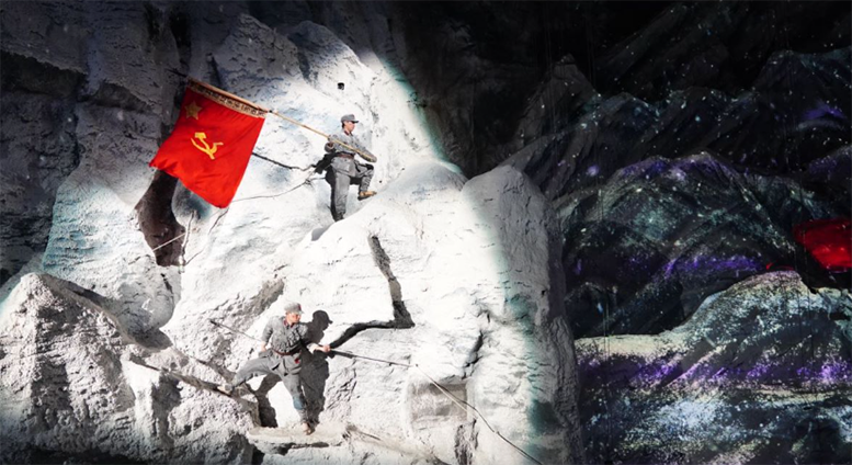 党支部成员观看了全域行浸数字演艺《红飘带·伟大征程》和《红飘带·多彩飞越》两大剧目。《红飘带·伟大征程》整体以无名英雄、血火洗礼、伟大转折、砥砺征途、胜利丰碑以及新时代新长征六个篇章组成。通过领先的科技展演成果和艺术表现形式,集合AI虚拟交互、全息影像、全维度机械运动、虚拟现实技术、三维声场等最新科技手段,数字化全景再现了长征之路。