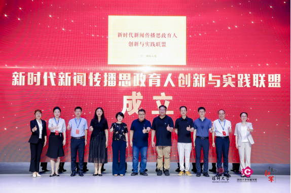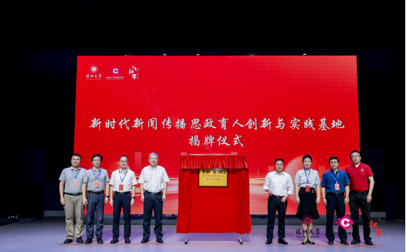 思政教育是立德树人、铸魂育人的重要抓手。为深入贯彻落实习近平总书记关于“立德树人、思政育人”的系列指示精神,创新新闻传播思政育人模式与实践,将立德树人教育理念和时代需求落实到新闻传播人才培养实践中,深圳大学传播学院与清华大学新闻与传播学院、中国人民大学新闻学院、中国传媒大学电视学院、南京大学新闻传播学院、浙江大学传媒与国际文化学院等国内十余个新闻传播学院共同成立“新时代新闻传播思政育人创新与实践联盟”,加强新闻传播思政育人交流与实践。为落实联盟工作,深圳大学传播学院落成“新时代新闻传播思政育人创新与实践基地”,基地由深圳大学传播学院党委与深圳大学党委组织部、宣传部、学生工作部以及校团委等单位共建,打造现代传播技术与红色文化创意传播有机融合的鲜活载体。会上,各代表参与揭幕,共同见证新时代新闻传播思政育人创新与实践联盟与基地成立。