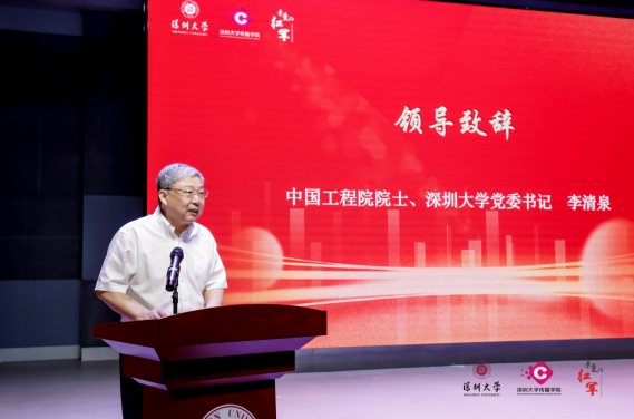深圳大学党委书记李清泉院士在致辞中讲到:“作为与特区同声相应的大学,深圳大学自建校以来始终牢记为党育人、为国育才的根本目标。同学们在剧本演绎沉浸式体验革命年代的理想信念,在改革开放历史领略国家的发展,在边疆和乡村践行青年的使命,不断创新深圳大学‘大思政课’的实践。”他表示:“高校新闻传播学科培养的是‘影响人的人’,责任重大,使命艰巨。希望我们携手并进,努力培养更多创新、爱国、奉献、能够担当民族复兴重任的时代新人!”