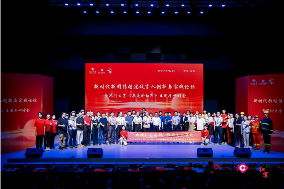 2024年6月22日,新时代新闻传播思政育人创新与实践论坛暨深圳大学《亲爱的红军》五周年研讨会在深圳大学传播学院举办。中国工程院院士、深圳大学党委书记李清泉,深圳市委宣传部副部长、市新闻出版局局长、市政府新闻办主任苏荣才,《亲爱的红军》特聘专家顾问国家一级导演、著名演员、深圳大学校友总会常务理事欧阳奋强,深圳大学党委组织部部长王志忠,深圳大学学生部部长陈云飞,深圳大学团委书记柯晓,深圳大学党委宣传部副部长杨振宇,深圳大学传播学院党委书记周小茜,深圳大学传播学院副院长、马克思主义新闻观创意传播与实践党支部书记黄玉波出席会议。