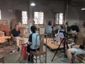 第一小队前往陆丰河西镇大盛陶瓷厂,采访了牙砵陶艺第十一代传承人蔡庆盛,队员们对牙砵陶器制作的全流程进行拍摄,记录了从采泥、踩泥、晾晒、脱模、划牙、上釉等十余个步骤。第二小队来到大安镇南溪村滚地金龙展示馆,与传承人黄贤青、黄伟雁进行了深入的交流,不仅了解了“滚地金龙”的独特表演艺术,还观赏了艺术团年轻学徒们的一段精彩龙舞表演,二人配合默契,让卧龙舞动起来,栩栩如生。