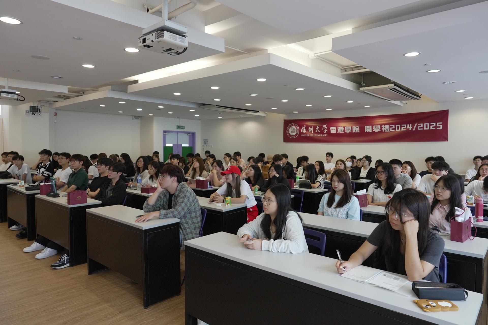 深圳大学香港学院隶属深圳大学(挂靠传播学院),旨在积极探索促进深港教育的双向融合发展,服务粤港澳大湾区建设,为香港青年在本地接受优质高等教育提供更多元的选择。香港教学点开学之前的9月4日,深圳大学香港学院的新生们还在深圳大学粤海校区与传播学院的新生们一起参加了学院开学典礼,详细了解了深圳大学的办学背景、使命责任、综合实力、师资力量、资源优势,以及传播学院的发展情况、学院文化、治学理念、人才培养理念等。