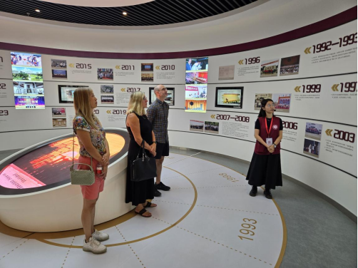 2024年9月22日,密歇根州立大学代表团参观了深圳大学校史馆及粤海校区,深入了解了深圳大学的办学理念、发展历程、学科建设等。校园内的现代化设施与浓厚的学术氛围给代表团留下了深刻印象,尤其是深圳大学在短短几十年间迅速崛起为国内外知名学府的“深圳速度”令其倍感钦佩。