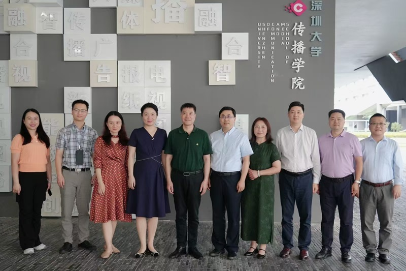 2024年10月17日下午,上海理工大学出版学院院长蔡锦达、党委书记张华、副院长杨庆国、副院长陶海峰、网络与新媒体系系主任张博、党政办公室主任高强一行6人到访深圳大学传播学院。双方就高层次传媒类人才培养、传媒类专业招生与就业等进行交流,并参观传媒国家级实验教学示范中心。深圳大学传播学院院长巢乃鹏、党委书记周小茜、副院长杨洸、网络与新媒体系教师张文文、党政办公室主任余宗蔚等接待了本次来访。