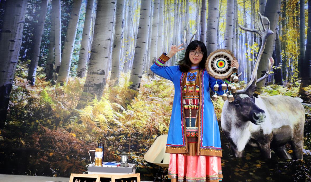 展览体验活动的一大亮点是,参观者可穿上现场提供的鄂温克族传统服饰,在别具地域风情的大兴安岭深处的森林场景,拍摄并打印专属个人的精美写真照片,留存关于鄂温克民族服饰体验的美好回忆。该体验活动也吸引了众多师生前往参与民族服饰写真打卡,活动现场气氛火爆、反响积极。