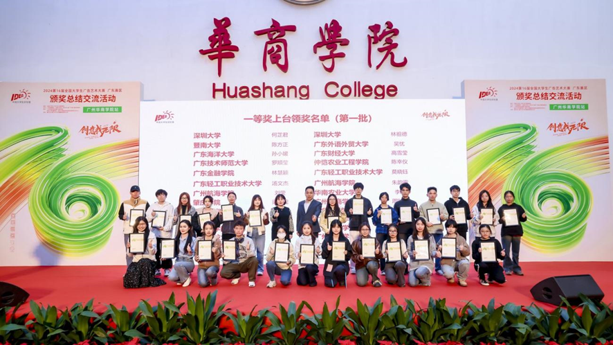 下午15:00,大广赛广东省赛颁奖典礼在广州华商学院中央图书馆中庭广场隆重举行。