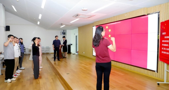 为加强师德师风建设,增强教师教书育人的责任感、使命感和荣誉感,结合学校要求,传播学院举办2025年新教师宣誓仪式。仪式开始,全体教职工面向国旗肃立,奏唱国歌。随后,在教授委员会主任周裕琼教授领誓、巢乃鹏院长监誓下,宣誓人方泽宏、付涵、李炳灿、张如坤、张一、韩少卿、聂鑫面向国旗庄严宣誓。