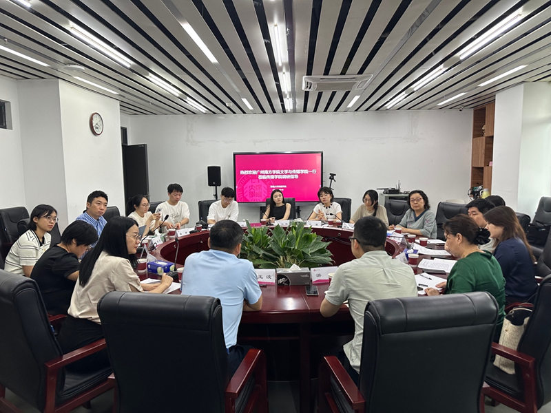 广州南方学院文学与传媒学院副院长游鸽等一行十分关注我院的本科专业建设、人才培养方案等方面的经验,黄玉波副院长详细介绍了我院的本科办学特色,包括专业转型思路、学科竞赛设计等。此外,双方还就毕业设计规划、学院招生情况、师资队伍建设、课程体系设置合等议题进行意见交换和讨论。