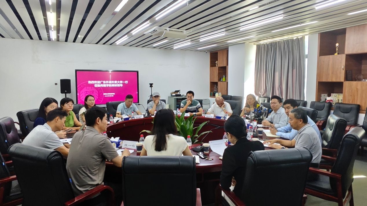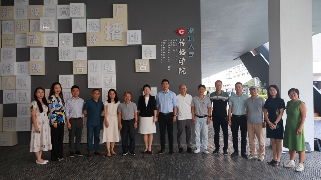 9 月 26 日 下午,广东外语外贸大学新闻与传播学院院长侯迎忠、书记商杰强(主持学院党委工作)、副院长李峻岭、党委副书记涂颖、新闻系主任陆扶民、网络与新媒体系主任陈鹏等一行到访深圳大学致艺楼传播学院 813 会议室。双方就学科专业建设、人才培养、科研智库、产教融合、学生实践等内容进行交流。深圳大学传播学院党委书记周小茜、副院长(主持工作)杨洸、党委副书记陈一鸣、副院长彭华新、网络与新媒体系主任曹博林、新闻系主任陈显玲、党政办公室主任余宗蔚、学工办主任李桂瑜接待本次来访。