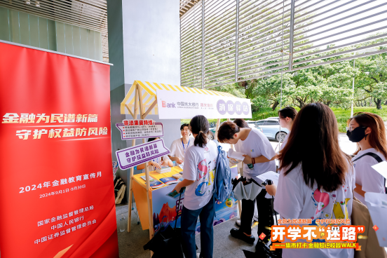 在粤海校区的各个角落,活动设计了六个“消保驿站”。每个驿站都围绕不同的防诈反诈金融主题展开,让学生们在轻松愉快的氛围中掌握实用的防诈反诈知识。中国银行深圳市分行站点强调的“三不一多”原则,农业银行深圳分行带来关于毕业求职的防骗提醒,中信银行信用卡中心推出诈骗电话的应对策略,平安银行信用卡中心针对贷款平台客服诈骗进行警示,光大银行深圳分行对非法集资特性进行剖析,平安理财针对资管新规进行解读,引导同学们树立正确的金融观、消费观,做理性消费和合法维权的守护者。