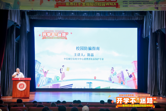 中信银行信用卡中心消费者权益保护专家陈磊针对校园诈骗的犯罪特点,向同学们普及了五大防诈神器、四大防骗公式,让大学生们争做校园金融知识达人。