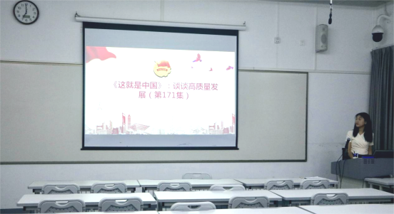 随后,学员们观看了《〈这就是中国〉:谈谈高质量发展》的第171集。张维院长围绕国内外热点、难点时政问题进行讨论,深入解析中国制度、理论、道路和文化,传达“民族自信”的核心精神。在深入了解中国的政治、经济、文化等方面后,学员们对国家的认同与自豪感得到了加强,对国家未来的发展有了更加深入的思考。