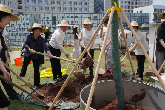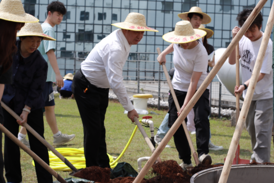 朱蓓薇院士祝福同学们“像花儿一样美丽,像树木一样茁壮成长”。李永华副校长回顾1997年深港师生在校园共植土沉香的情景,他说:“十年树木、百年树人,这次深港学子携手种花植树,庆祝‘五一’劳动节和‘五四’青年节,祝愿同学们的未来像小树一样——面朝大海,春暖花开!”