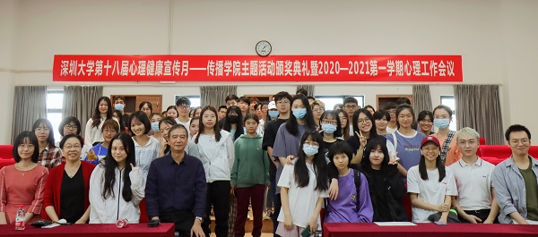 10月19日,深圳大学第十八届心理健康宣传月——传播学院主题活动颁奖典礼暨2020-2021第一学期心理工作会议在沧海校区致艺楼1016成功召开。传播学院党委副书记范芳彬、深圳大学心理辅导中心周红副教授、深圳大学心理辅导中心蔡洁钒老师出席了本次会议。