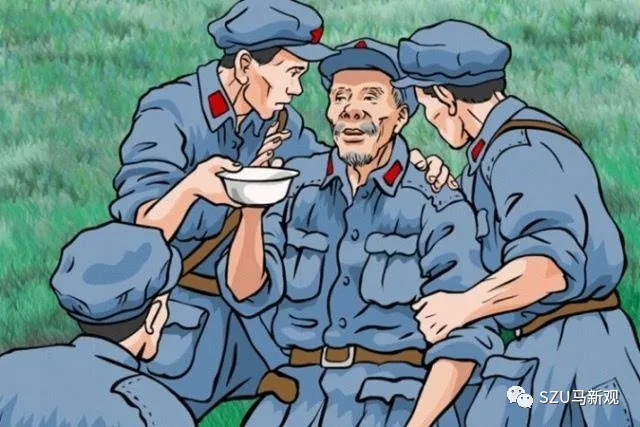 1935年秋天,红四方面军进入草地,许多同志得了肠胃病。我和两个小同志病得实在赶不上队伍了,指导员派炊事班长照顾我们,让我们走在后面。