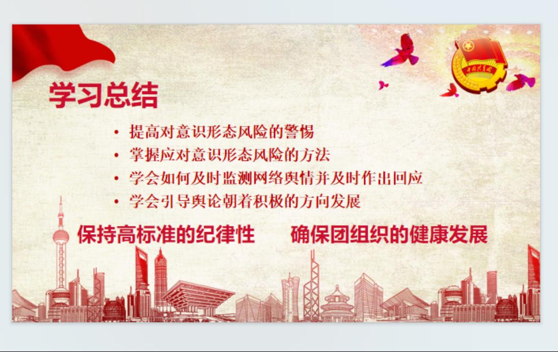 通过这一阶段的学习,各班团支部书记将进一步提高对意识形态风险的警惕性,进一步掌握应对意识形态风险的方法,强化纪律观念,推动基层团组织的健康发展。